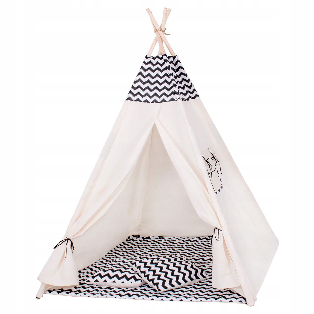 Bērnu rotaļu telts ar spilveniem, melnbalta, 160 x 120 x 100 cm
