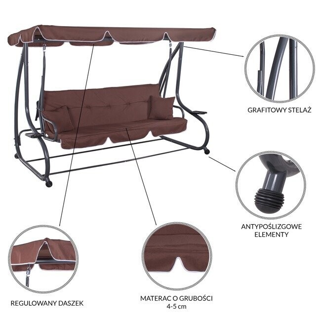 Dārza šūpuļdīvāns 230x120x164 cm, 4-vietīgs, brūns