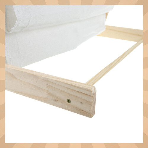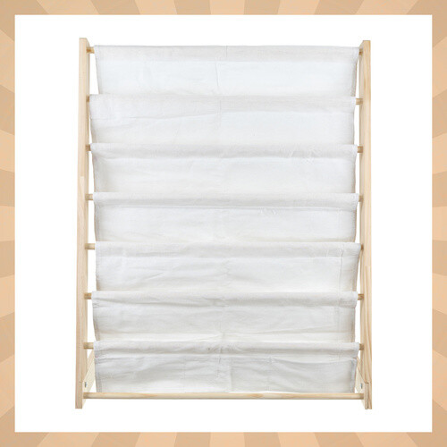 Its wooden structure combined with fabric shelving offers both aesthetics and functionality, complementing modern and classic interiors. The shelf features six spacious shelves made of reinforced material for organizing books and toys, plus pockets for storing pencils and accessories—keeping everything within easy reach.