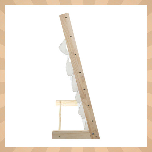 The shelf's height (79 cm) is perfectly tailored for little ones, facilitating safe, independent access without the need for climbing. Despite its light weight (1.4 kg),the stable base and wooden frames prevent tipping. Safety is prioritized with rounded edges and no sharp parts. Assembly is quick and stress-free.