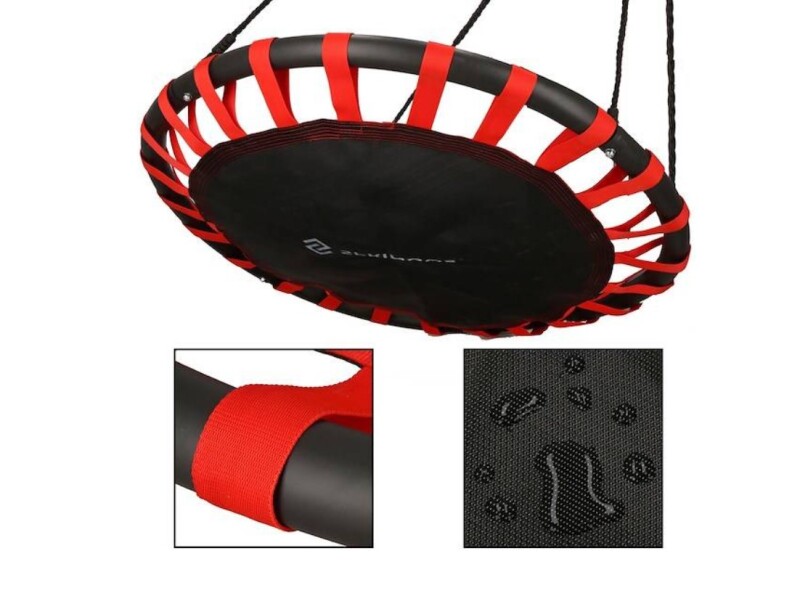 This sturdy swing is based on a 110 cm diameter steel frame covered in durable water-repellent synthetic material. The swing is protected from shock and adverse weather conditions. Ropes 180 cm long, made of nylon and are resistant to changing weather conditions, and therefore the swing can be left in the yard in rain and snow. Adults can also indulge in this pleasure, since the maximum load is 100 kg.