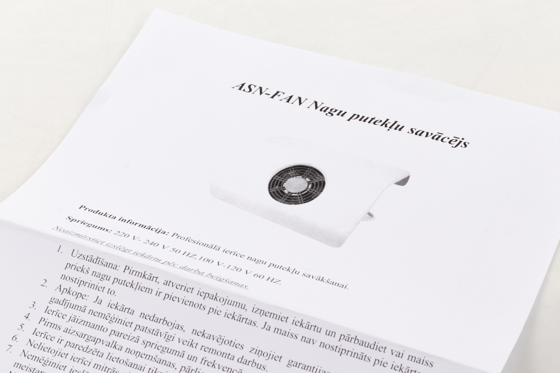 Nail Dust Extractor ASN-FAN is designed for dust collection during the procedure of nail correction/ build up. The model has compact dimensions, so it can be conveniently placed on the working table of a manicure professional.