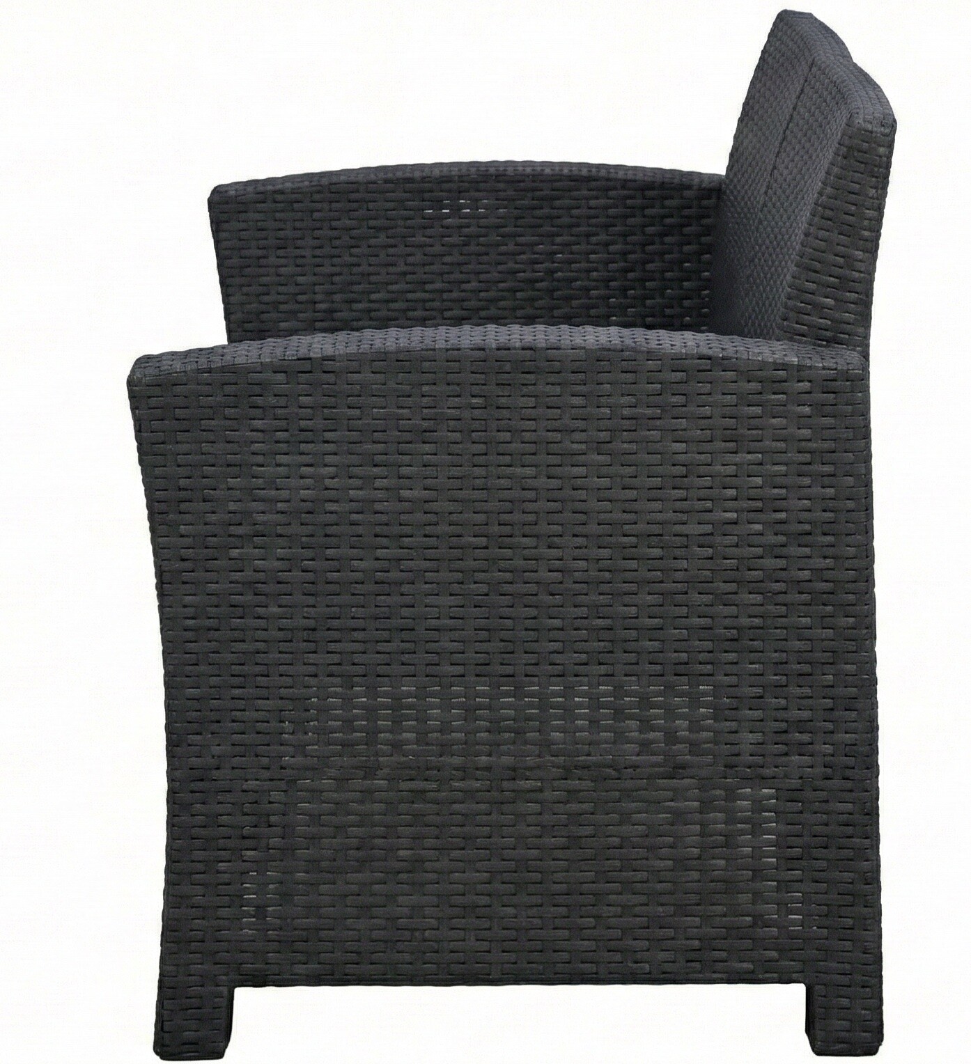 Made from durable poly rattan, the sofa is absolutely resistant to UV radiation, rain, and moisture, guaranteeing a long service life. The model is finished in an elegant Charcoal grey color. The rattan weave and clean lines give it a modern and stylish look.