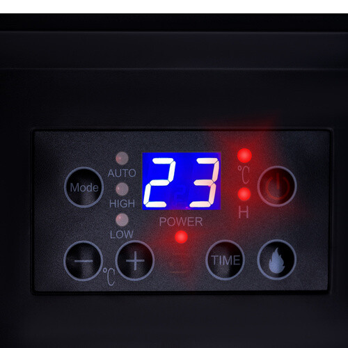 With 2000 W power, it quickly heats any room, ensuring comfort on cold days. It creates a realistic, cozy ambiance with its LED flame fireplace effect, perfect for the living room, bedroom, or office.