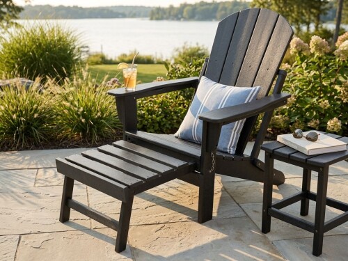 - Practical Elegance: The "polywood" tabletop mimics the look of natural wood but is completely waterproof.