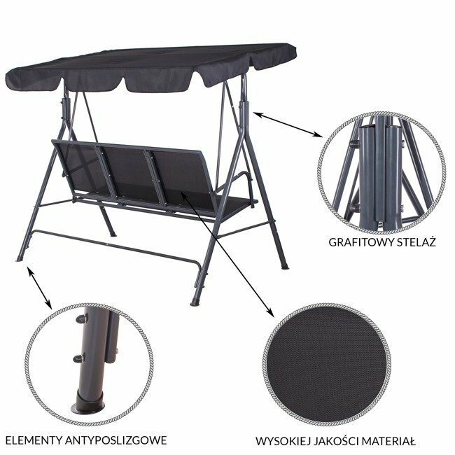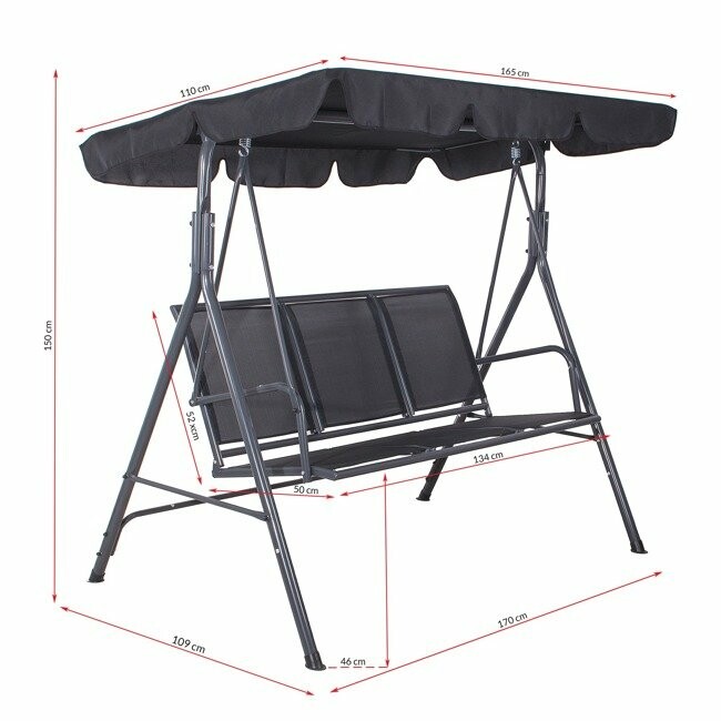 3-seat garden swing has a laconic design and a reserved black colour. It will ideally fit a garden in a trendy Japanese style, but it will also embellish any yard with its elegant design.