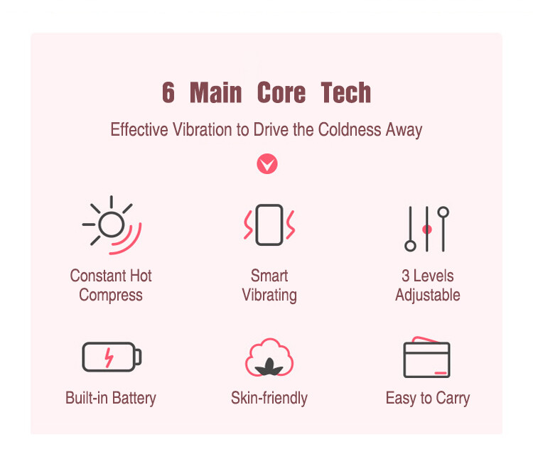 - 3 levels of vibrating Hi5 Relly Menstrual Pain and Cramp Relief Heating Pad has 3 levels of vibration adjustable: