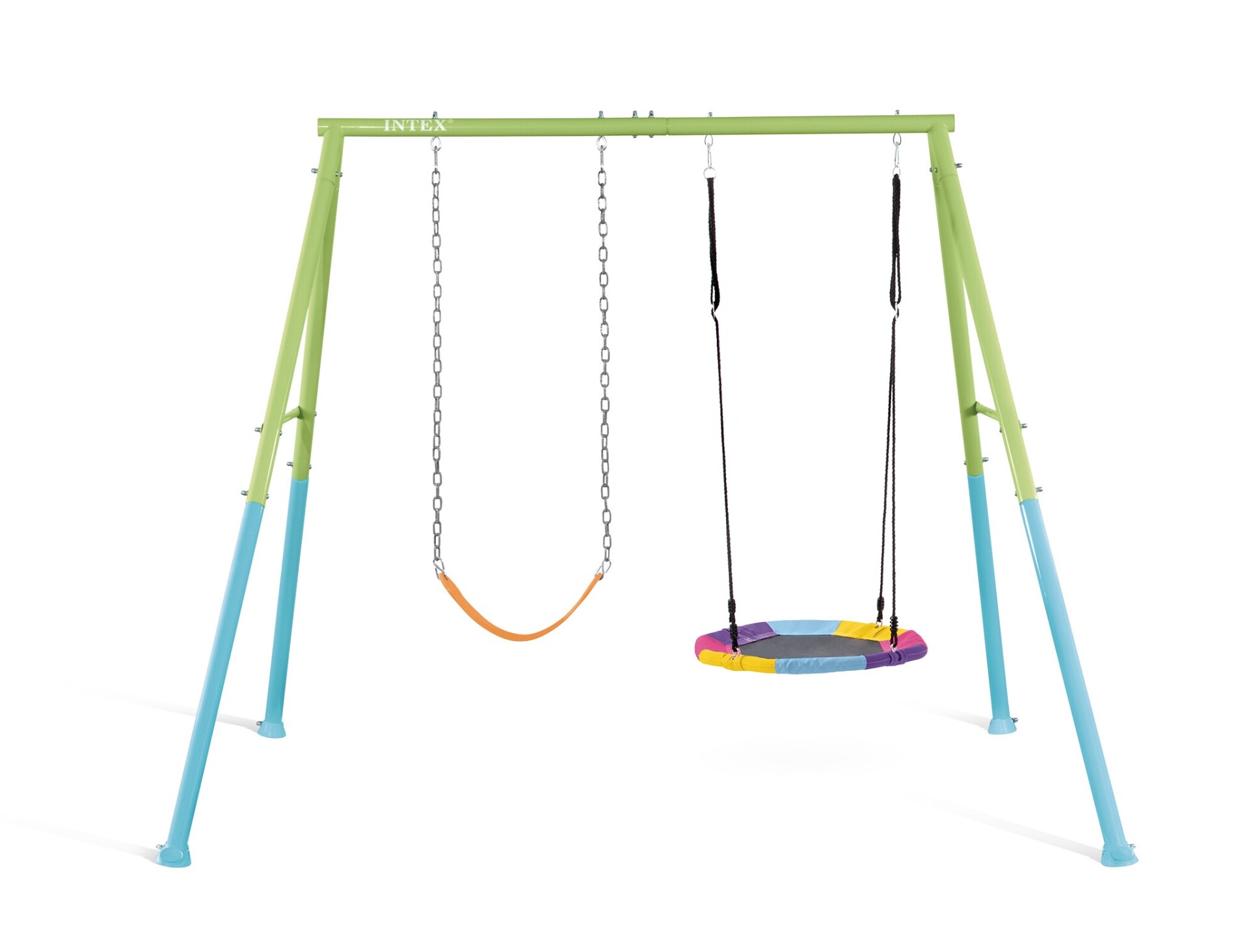 Lots of outdoor fun thanks to this toy with two different swings next to each other. The bird's nest swing can accommodate 2 children. Children can also invite their friends to play in the garden, because in addition to the saucer swing, this unit also has a height-adjustable chain swing with a flexible seat. Intex's durable, sturdy design makes this device a safe toy that kids will use for years to come.