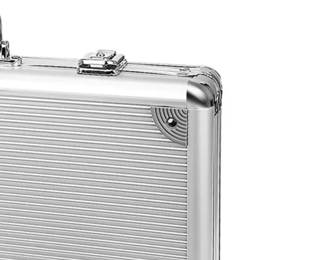 The poker set is packed in a very durable case made of aluminum. It has an ergonomic handle that makes it easy to carry and transport.The inside of the suitcase has been specially protected, each element has its own embossed place so that everything is always in place when you carry it. On the other side there is a sponge that stabilizes the interior during transport, making the set safe.