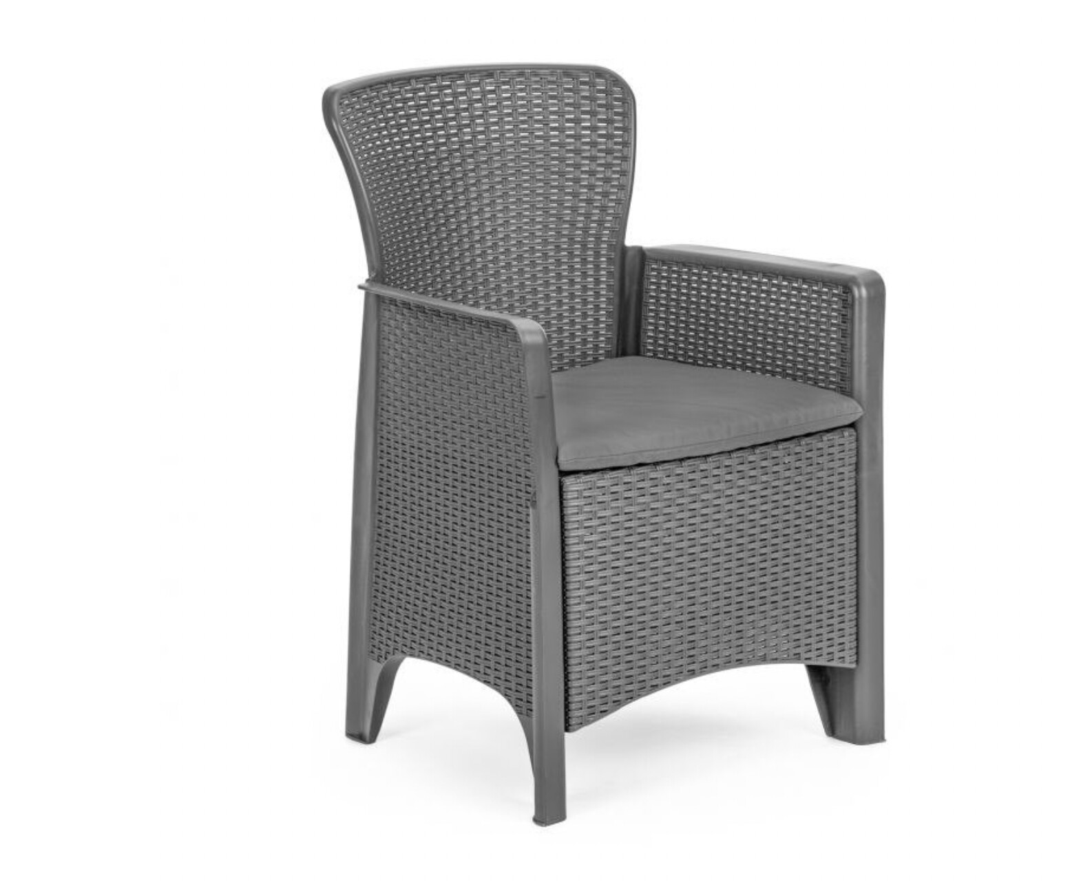 The garden chair with a backrest is made of durable, all-weather artificial rattan in an elegant charcoal shade. It is not afraid of the sun or moisture and will bring you joy for many years. The high backrest and comfortable armrests create ideal conditions for complete relaxation. A soft cushion is included in the set to guarantee maximum comfort.