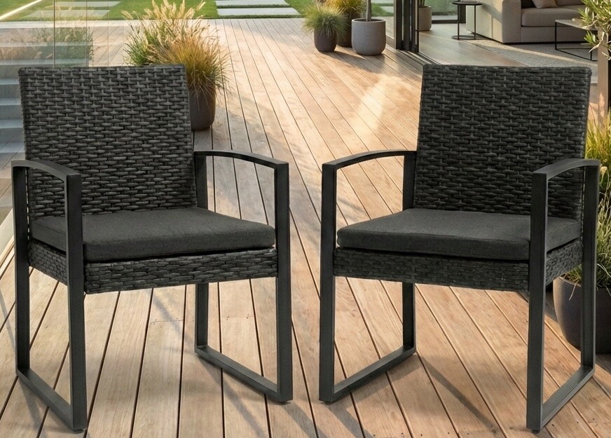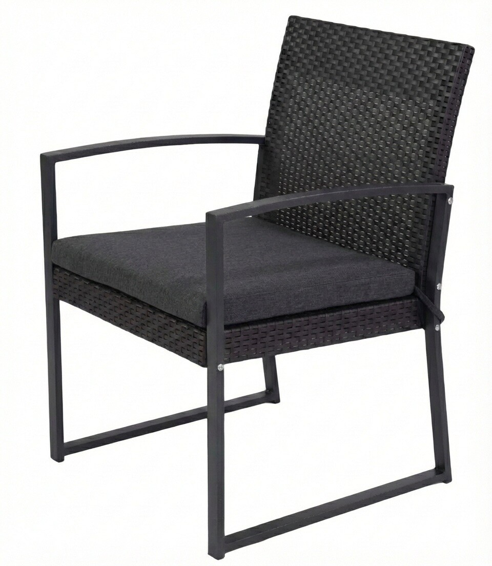 Tired of bulky and short-lived garden furniture? Introducing this garden chair—the perfect combination of modern design, comfort, and exceptional durability. The clean, geometric lines and matte black metal frame create an elegant, minimalist look that fits perfectly into a modern landscape or a loft-style terrace.