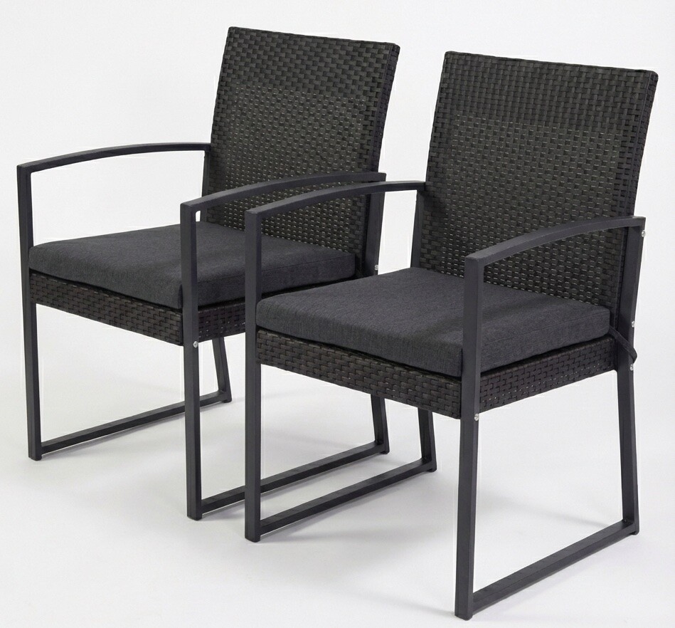 The backrest and seat are woven from high-quality artificial rattan in a charcoal shade, which is absolutely resistant to rain, sun, and temperature changes. A soft cushion is included, providing incredible comfort for long periods of sitting. Comfortable armrests complete the relaxation area.