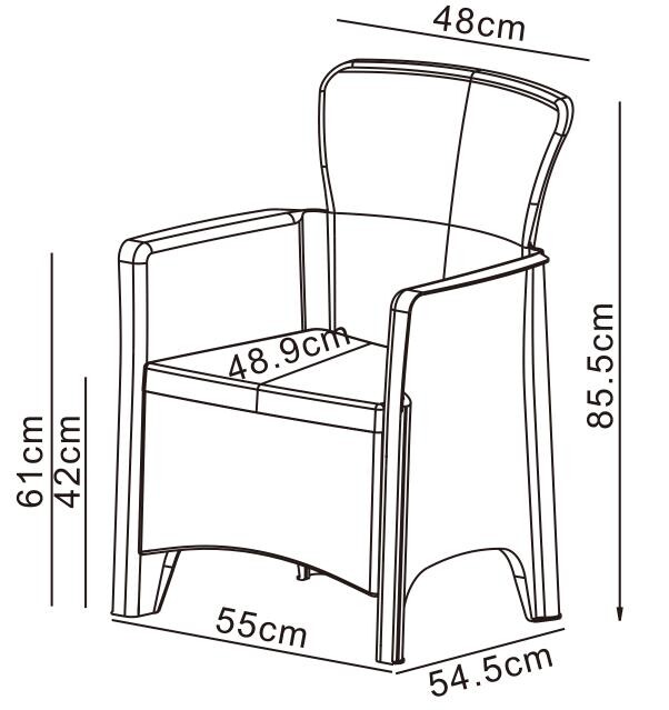 - Seat height (without cushion): 42 cm
