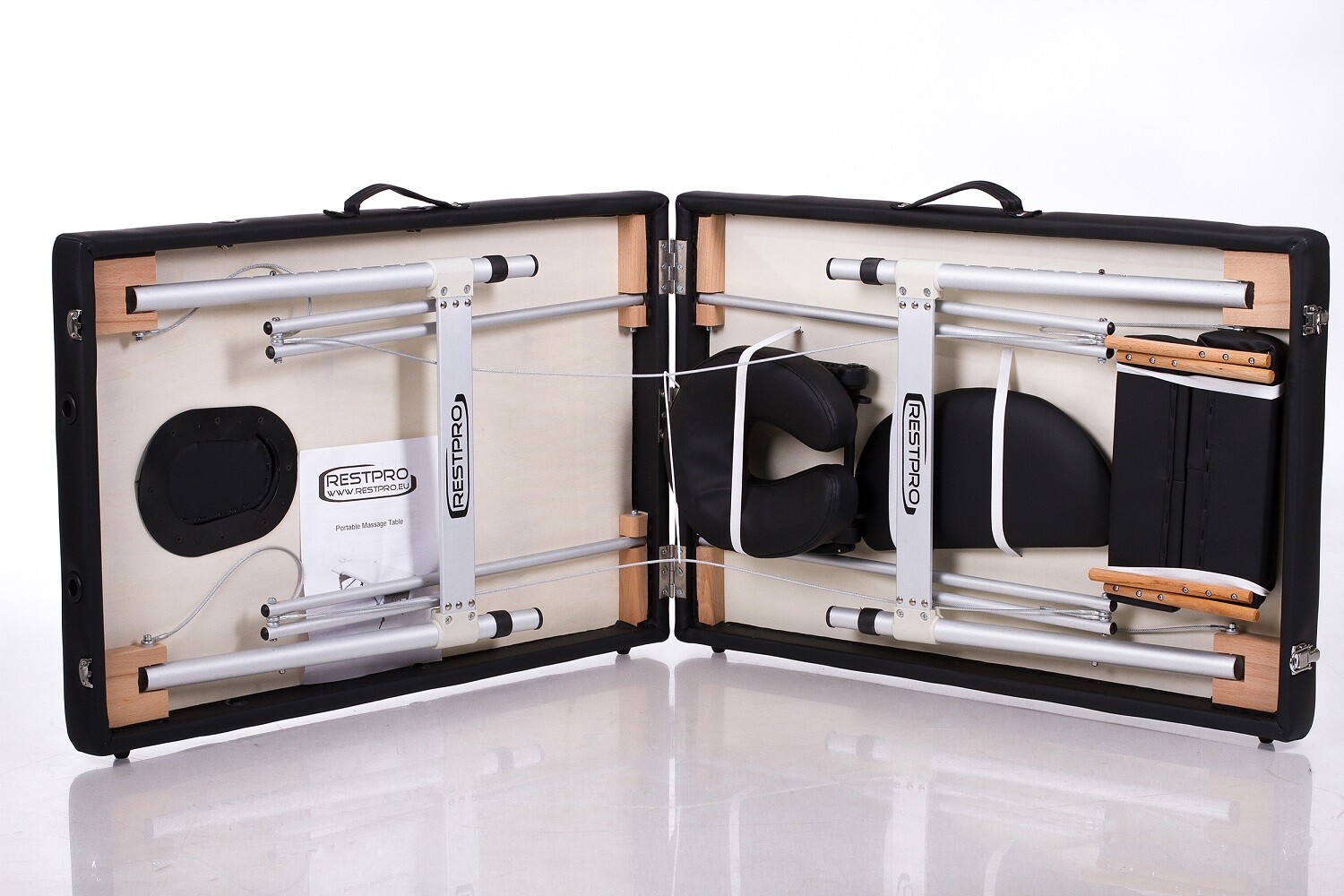 - Massage table package includes: RESTPRO® Massage Table, carry case, user’s manual.