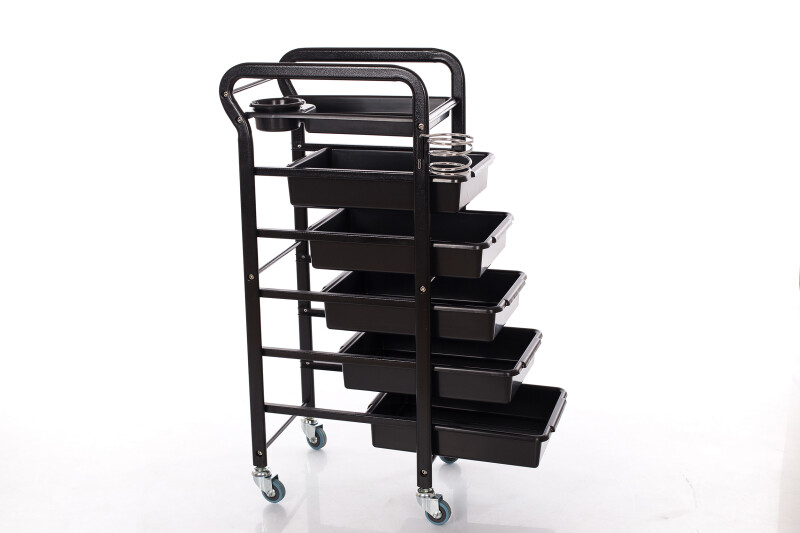 Five drawers allow you to store a large number of accessories you need. In addition, there are also hair dryer holders on the top. Now you can forget about the mess at your workplace - having this trolley at hand, you will immediately find what you need.
