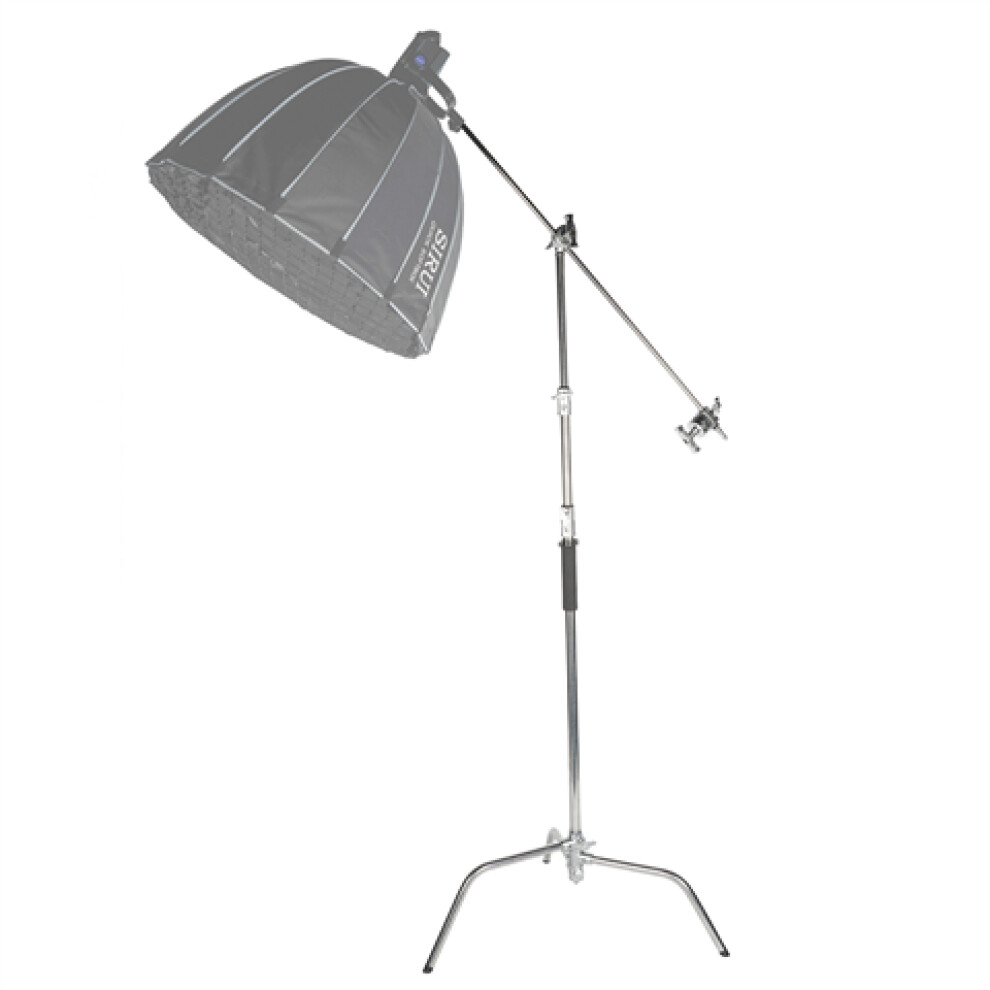 Code: B-610221 This heavy-duty CS02 C-stand from Sirui is easy to take anywhere. That's because of the very compact way you fold it. The nice thing about this version is that it comes with wheels and sandbag. On location, the sturdy and robust. By using sturdy metal connecting parts, you use it safely in any production. The tripod is extendable between 150 cm and 320 cm. The spigot connection on top has a 1/4" male thread. Thus, the tripod supports virtually all equipment.