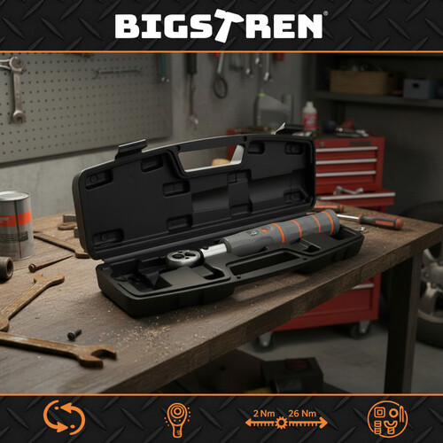 Code: 00027087 The BIGSTREN torque wrench 1/4 2-26 Nm is a precision tool engineered for controlled screw tightening with exceptional accuracy of ±0.5%. Ensure reliable and secure connections in automotive, bicycle, and general service applications, effectively preventing stripped threads or loose fasteners. It's an indispensable tool for both professional workshops and enthusiastic home DIY projects.