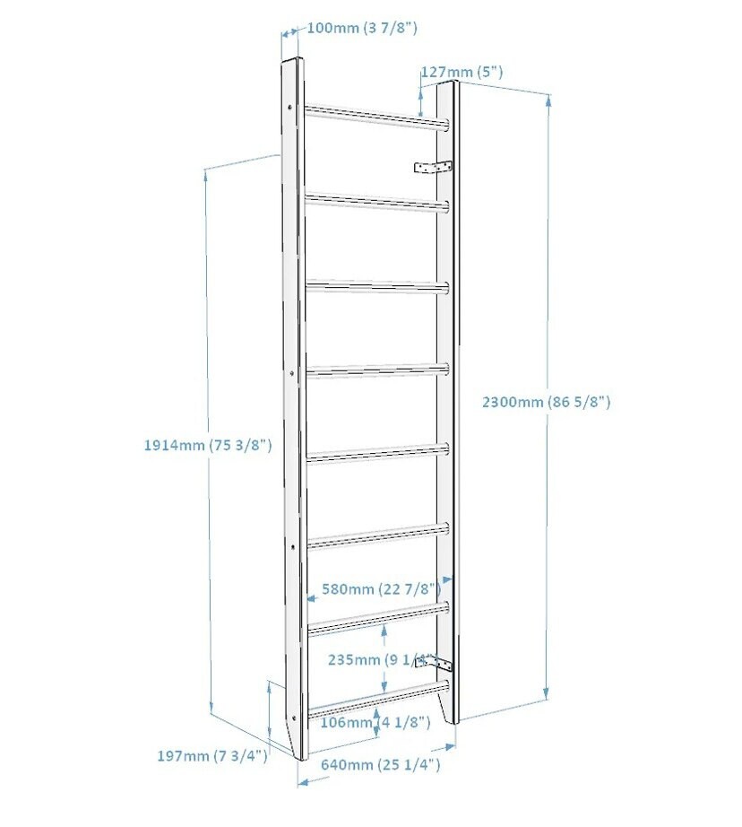 Attention! The Swedish ladder cannot be mounted on a plasterboard wall. Wall plugs and screws for wall attachment are not included and must be selected according to your wall type. Other necessary mounting hardware for the ladder itself is included. Wall fasteners must be selected according to your wall type. The minimum wall thickness when using wall plugs is 12 cm.