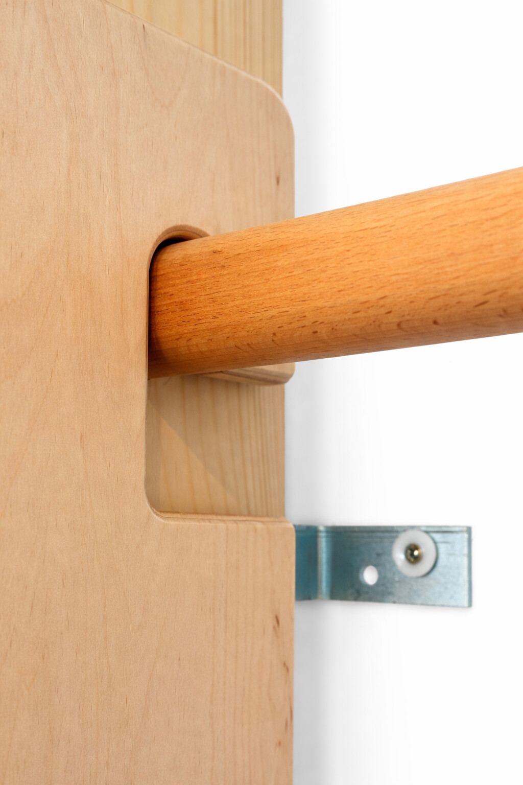 Inspire your family to move and take care of their health with the wooden Swedish ladder RESTPRO® WOOD SET 230x65cm. Made from high-quality beech wood, it will not only last a long time but also perfectly fit into any interior. This Swedish ladder is designed to be both an elegant interior element and a versatile piece of sports equipment.