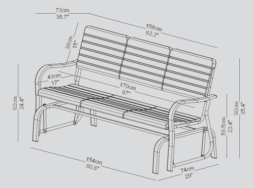 3-vietīgs dārza sols ar atzveltni 170x74x90 cm, tumši zaļš