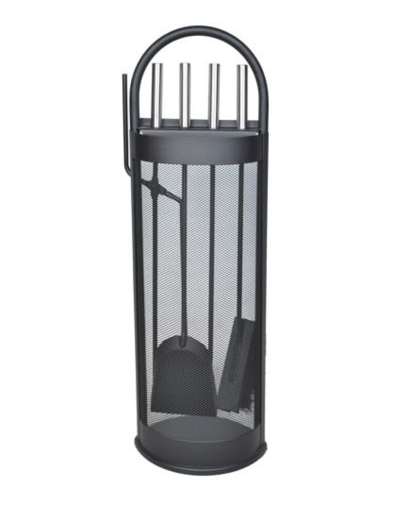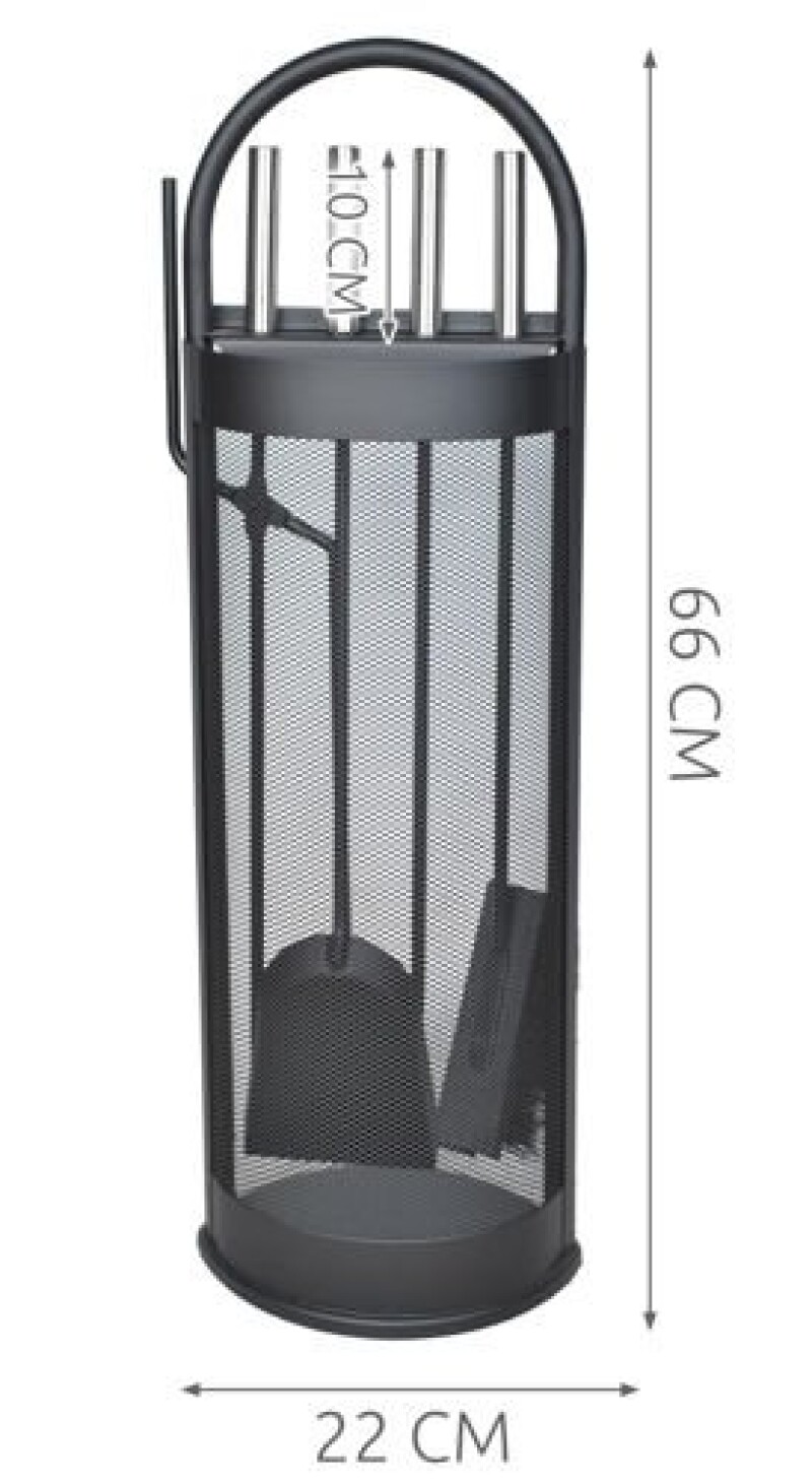 5-daļīgs kamīna piederumu komplekts ar mūsdienīgu dizainu. Izturīgs, viegli lietojams, izgatavots no tērauda. Komplektu ir viegli uzturēt tīru, pateicoties statīvam, kas noturēs netīrumus un pelnus no instrumentiem, atstājot Jūsu māju tīru. Pārsegs aizsargā piederumus pret dzirkstelēm no kamīna. Konturētā statīva forma ļauj ietaupīt vietu, bet praktiskais rokturis uz vāka ļauj ērti pārnēsāt piederumus.