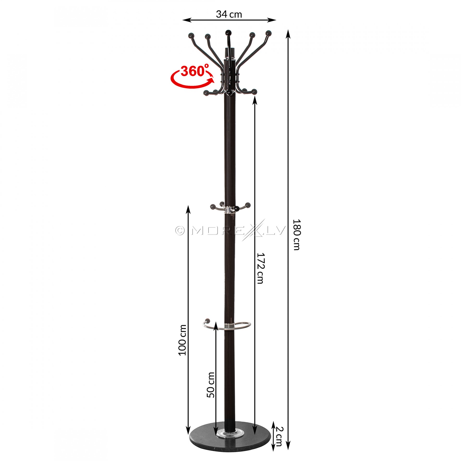 Ieejot telpās, ir nepieciešams novilkt virsdrēbes un neuztraucieties par toizskatu. Drēbju pakaramais ir vienkāršs un drošs apģērbu, aksesuāru un lietussargu uzglabāšanas veids. Āķi uz pakaramā atrodas vairākos līmeņos. Lietussargu turētājs atrodas apakšējā daļā. Produkta stabilitātei ir paredzēta uzticama apaļa pamatne no augstās kvalitātes tērauda.