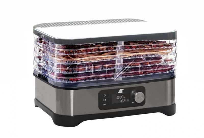 Dārzeņu, augļu un gaļas žāvētājs izgatavots no izturīgas plastmasas, kas nodrošina izstrādājuma ilgstošu izmantošanu. Caurspīdīga kamera ļauj kontrolēt kaltēšanas procesu, bet uz 5 paliktņiem var vienmērīgi izvietot lielu pārtikas gabaliņu skaitu.