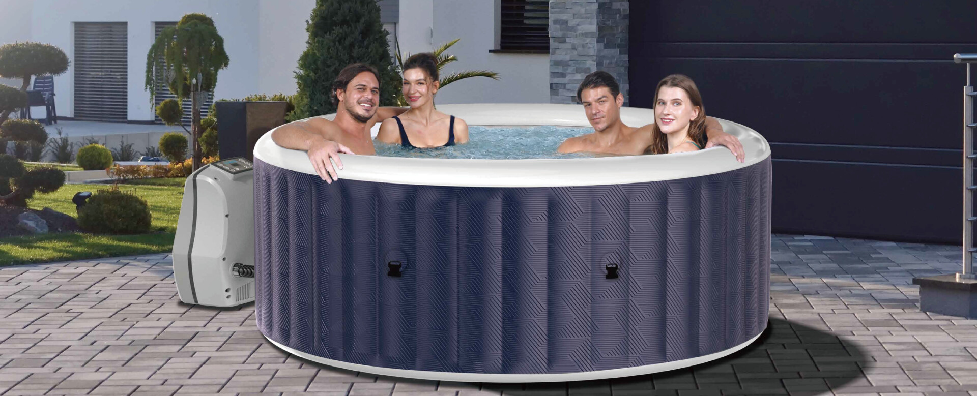 Phuket Laminated PVC Round Blue Laser Spa — piepūšamais džakuzi, kas apvieno premium dizainu ar «zilo lāzera līniju» efektu un augstu uzticamību. Pateicoties laminētā PVC izmantošanai un iekšējai I-Beam struktūrai, tvertne saglabā perfektu formu un izturību pret deformāciju pat pie pilnas slodzes, nodrošinot komfortablu atpūtu kompānijai līdz 6 cilvēkiem.