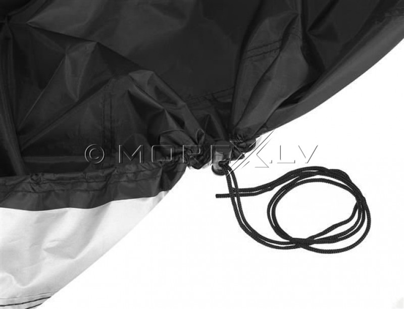 Чехол имеет достаточно большой размер. Он полностью накрывает кресло-качели сверху и не имеет зазора, поэтому защищает изделие от влаги. В его нижней части имеется шнур, который затягивается и защищает от порывов ветра. Не нужно больше переносить кресло в гараж или подвал во время непогоды. В чехле изделие может оставаться в саду в любую погоду.