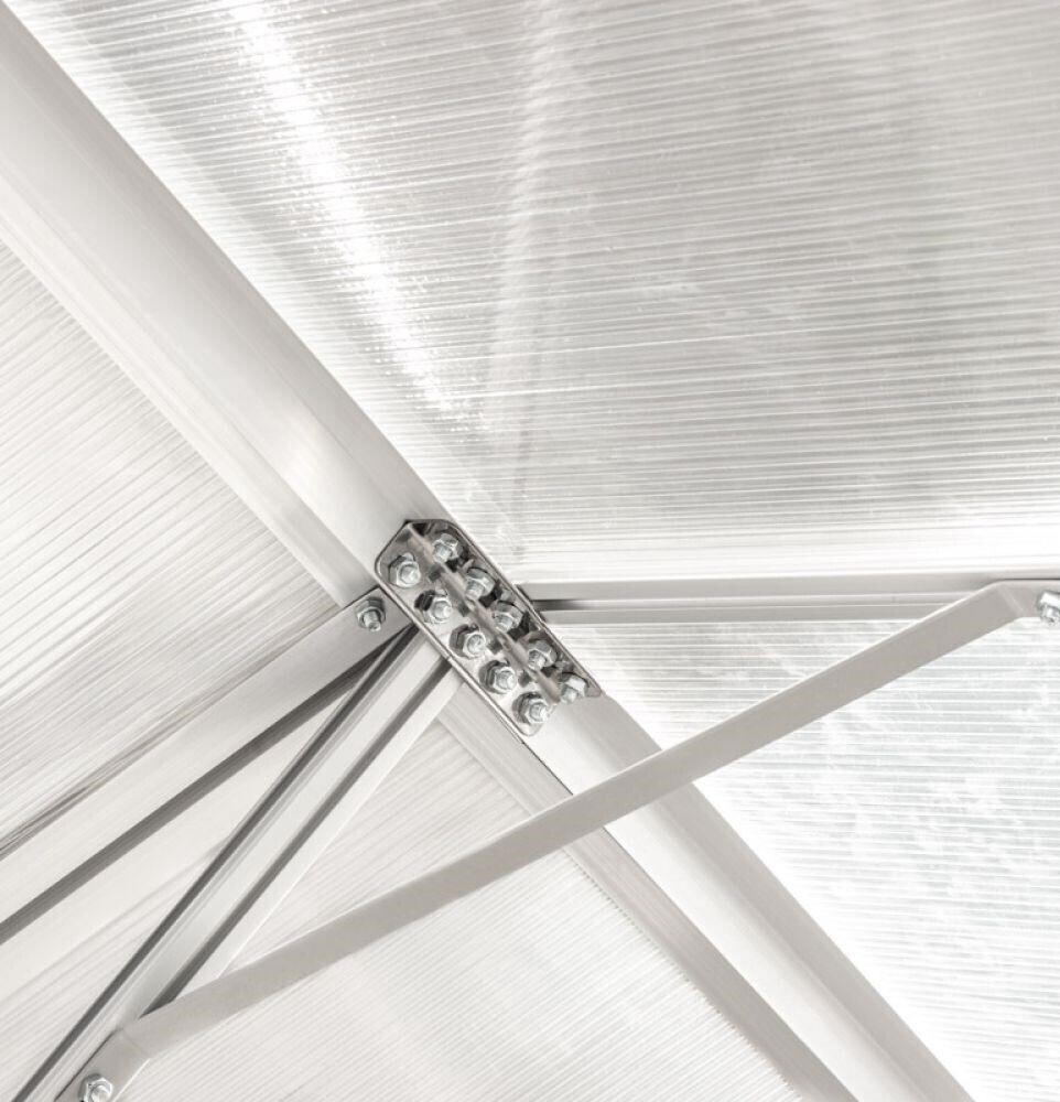 - Стены и крыша из сотового поликарбоната толщиной 4 мм обеспечивают оптимальное светопропускание и правильное его рассеивание, создавая идеальный микроклимат.