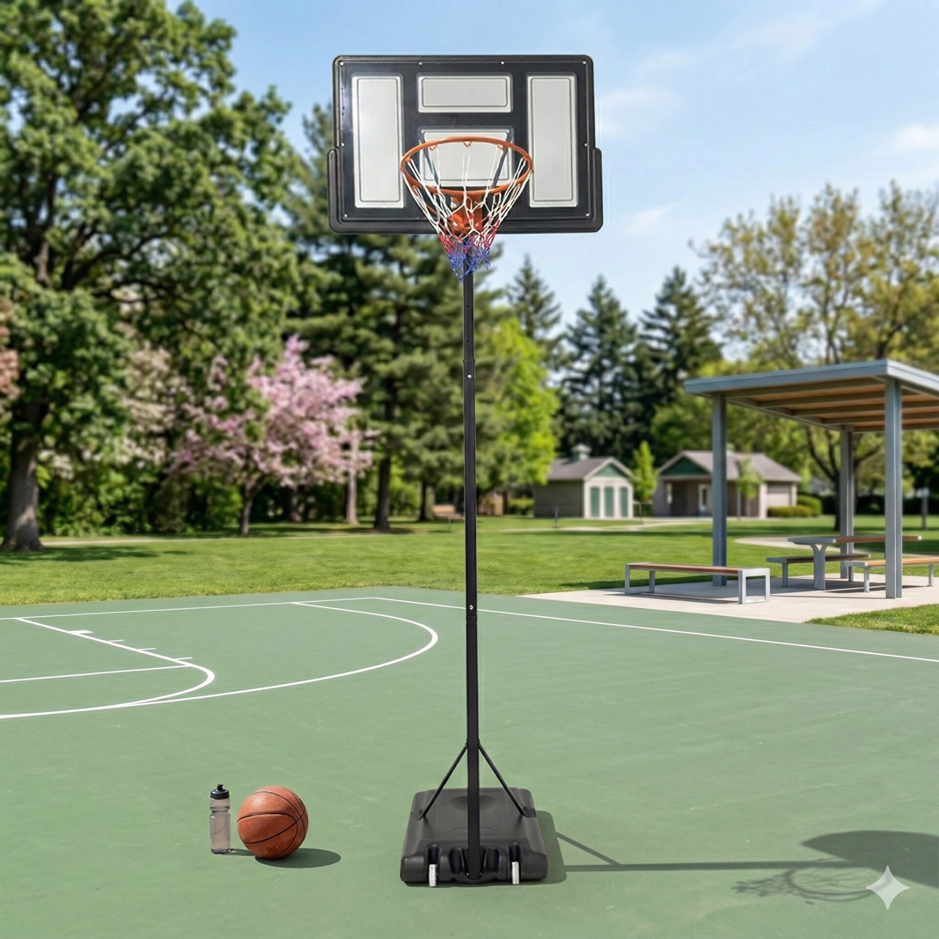 Активные игры на свежем воздухе являются залогом крепкого здоровья и иммунитета людей любого возраста. Одним из главных преимуществ этого баскетбольного комплекса является его мобильность. Перемещать его в нужное место помогают специальные колесики в основании. Кроме того, преимуществом этого спортивного инвентаря является универсальная и безопасная конструкция – комплекс изготовлен из самых современных качественных материалов.