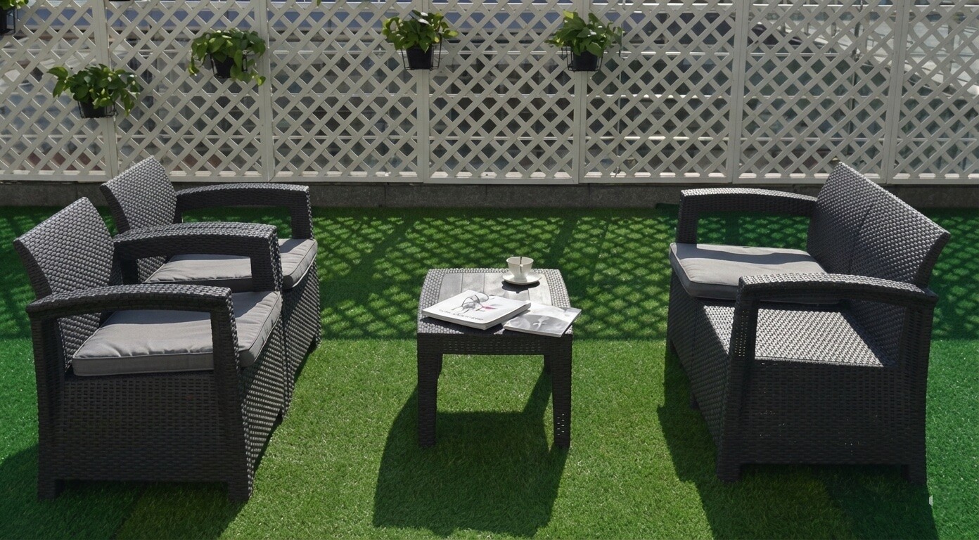 Представляем комплект уличной мебели — идеальное сочетание современного дизайна и долговечности, созданное для вашего сада, патио или зоны у бассейна.