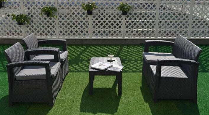 Комплект изготовлен из прочного искусственного ротанга (поли ротанга),который идеально имитирует натуральную лозу. Благодаря материалу, мебель абсолютно устойчива к атмосферным воздействиям — ей не страшны солнечные лучи (УФ-излучение),дождь и перепады температур. Мебель сохранит свой первоначальный вид долгие годы. В основе конструкции лежит прочный и устойчивый к коррозии металлический каркас, что обеспечивает надежность и стабильность.