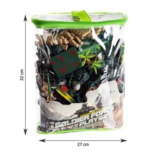 Этот удивительный набор состоит из очень большого количества элементов. В набор входят: солдаты, оружие, танки, самолет, пушки, здания, проволочные заграждения, деревья и множество других аксессуаров, которые позволят вам создать уникальные военные декорации. Игрушка отлично подойдет как дома в дождливые дни, так и на природе, например. в парке или на детской площадке. Набор находится в кейсе на молнии с ручкой, что позволит удобно хранить и транспортировать.