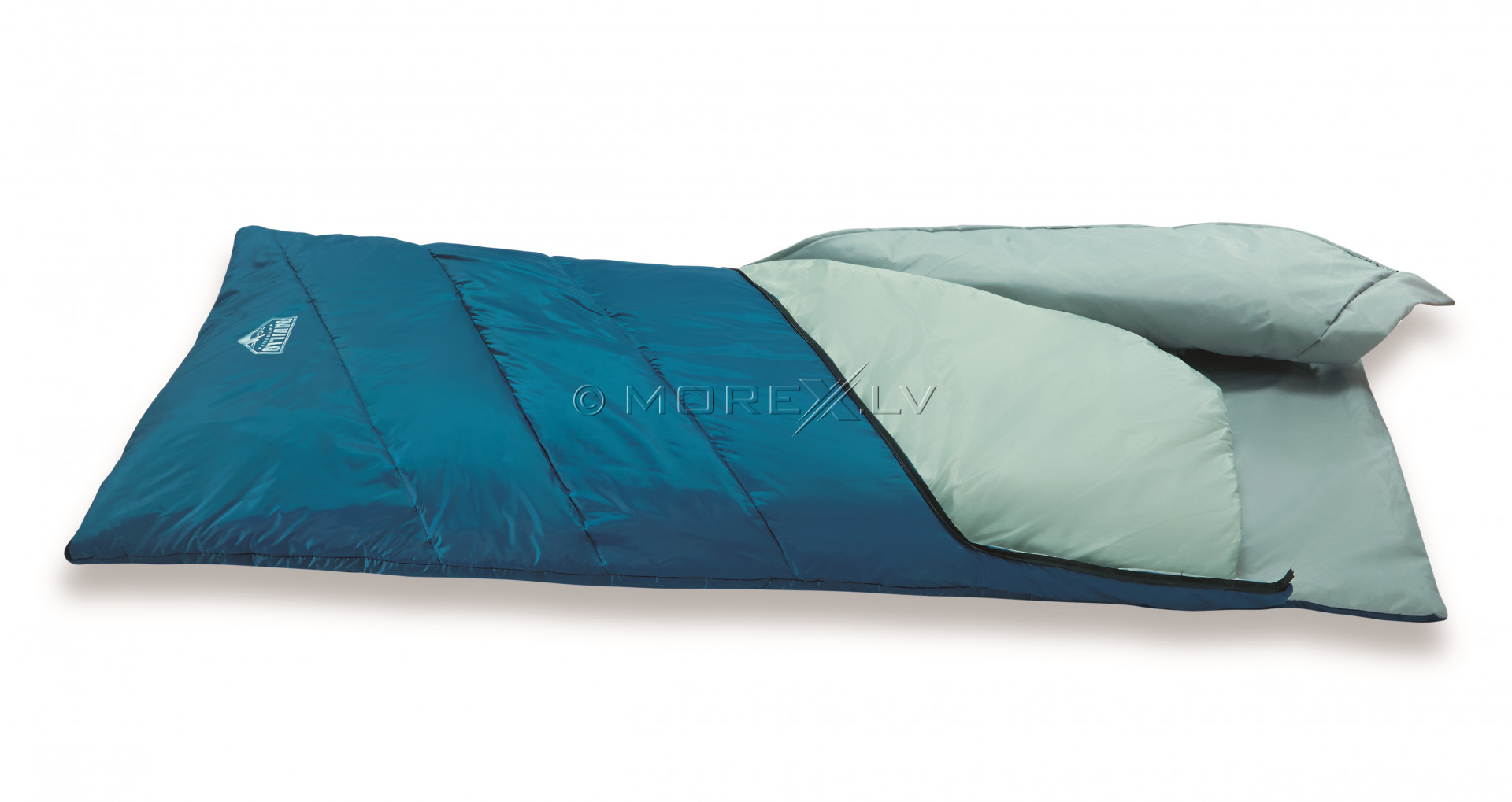 Двухслойный спальный мешок с вентиляцией насыщенного синего цвета имеет многофункциональную конструкцию. Вы сами регулируете уровень защиты при высокой или низкой температуре. За счет повышенной эластичности наполнителя внутреннего слоя спальный мешок bestway повторяет контуры вашего тела.