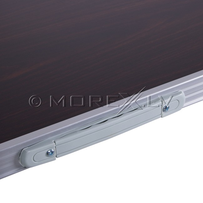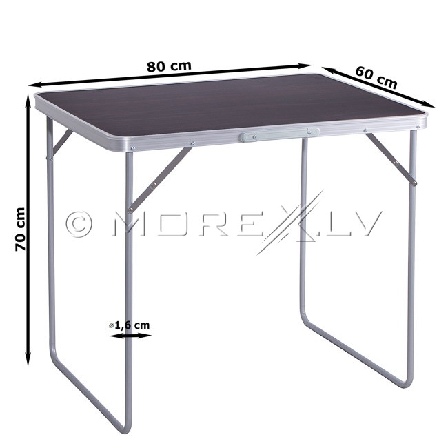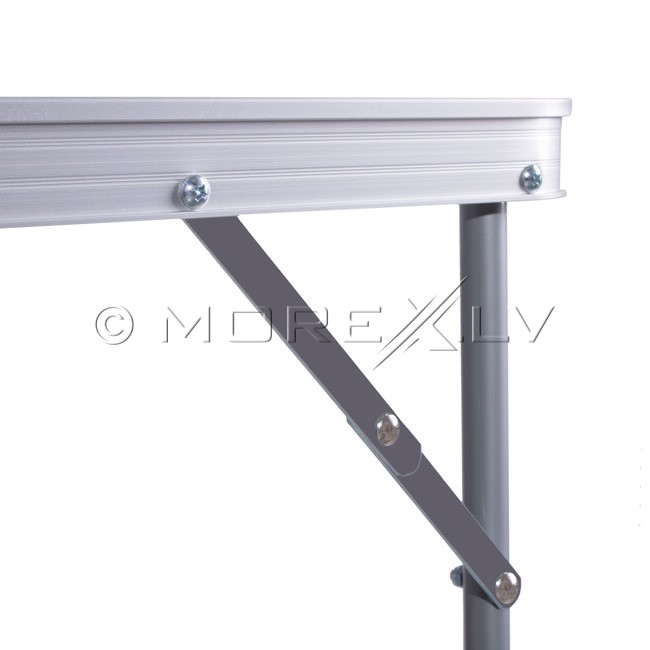 Saliekams alumīnija galds, kas izgatavots no augstas kvalitātes materiāliem. Izturīga alumīnija konstrukcija padara galdu stabilu un izturīgu. Salokāmas kājas un īpašs rokturis padara to ļoti funkcionālu un viegli transportējamu. MDF galda virsma. Pēc salikšanas galda aizņem maz vietas. Montāža ir ļoti vienkārša un ātra.