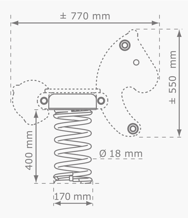 Krāsains un izturīgs atsperu šūpoles elements bērniem ar “Safari” dizainu zirga formā. Ideāli piemērots rotaļu laukumiem, privātām āra spēļu zonām. Izgatavots no augstas kvalitātes HDPE plastmasas, kas ir noturīga pret laikapstākļiem, UV starojumu un mehānisku nodilumu. Biezais materiāls (19 mm) nodrošina ilgmūžību un drošu lietošanu. Lielā izmēra metāla atspere ar pastiprinātiem stiprinājumiem garantē stabilu un drošu šūpošanās kustību. Konstrukcija ir izturīga un piemērota intensīvai lietošanai. Šis modelis paredzēts uzstādīšanai ar metāla enkuru un nav paredzēts betonēšanai.
