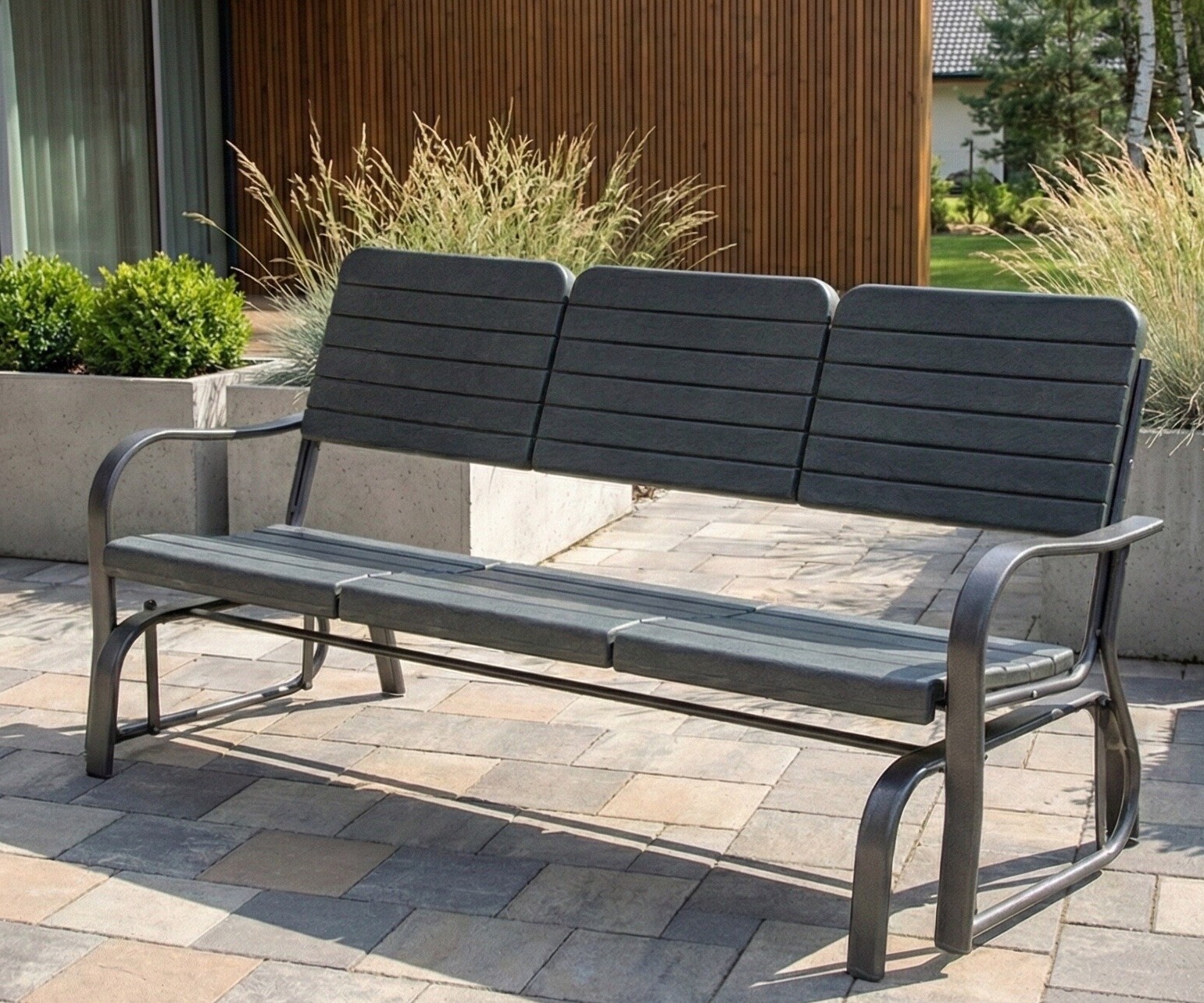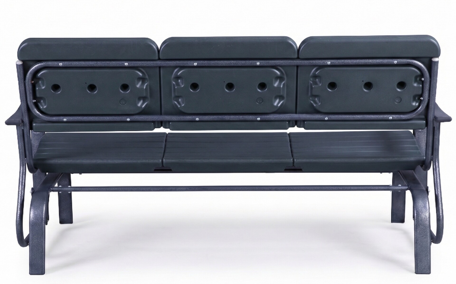 - Sēdekļa un atzveltnes materiāls: HDPE (augsta blīvuma polietilēns, kas izgatavots ar pūšanas formēšanas metodi) – izturīgs pret mitrumu, UV starojumu un temperatūras svārstībām.