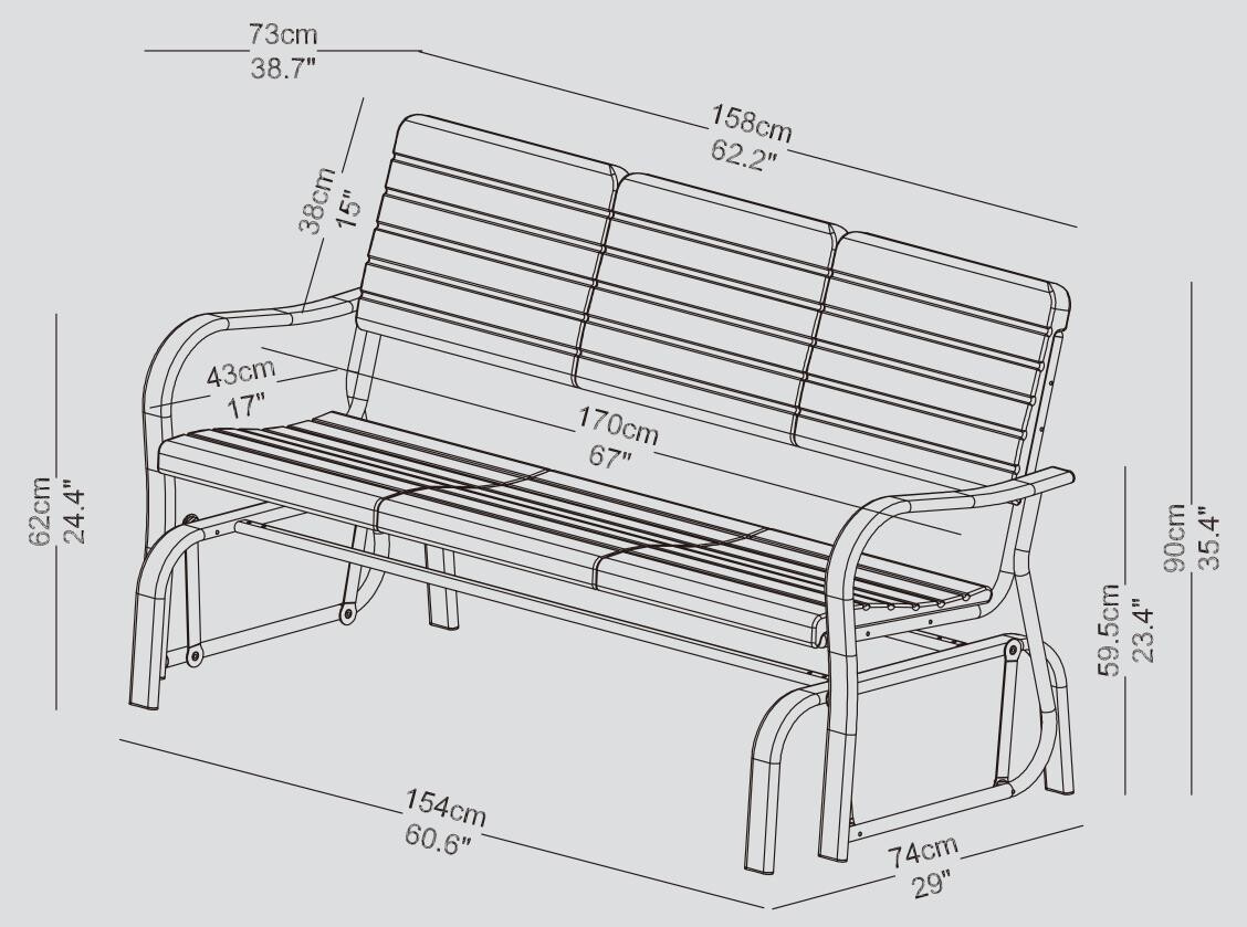Trīsvietīgs dārza šūpuļsoliņš 170 cm, tumši zaļš