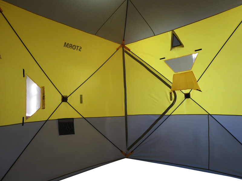 Telts konstrukcijā ir paredzētas divas ventilācijas atveres. Divām durvīm ir divvirzienu rāvējslēdzēji. Caurspīdīgus logus var aizvērt. Ja nepieciešams, vienu telts pusi var pilnībā pacelt, stiprinot malas pie teleskopiskajām kājām. Komplektā ietilpst īpaši stiprinājumi telts uzstādīšanai uz ledus. Tie nodrošinās telts stabilitāti. Ērtai transportēšanai telts kubs ir saliekama kompaktā somā.